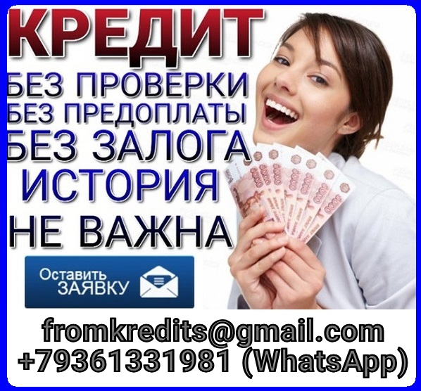 - Работаем с любыми проблемами по кредитованию (негативная кредитная история, долги, просроченные платежи, действующие кредиты, судебные решения м т.п.); - Решение по кредитной заявке в день обращения; - Из документов нужен только паспорт и любой второй документ; - Без подтверждения доходов и занятости; - Получение в Вашем городе, работаем в регионах РФ;- Возрастные ограничения 18-65 лет (включительно);- Без залога, поручителей и предоплаты;- Предоставляем гарантии, которые другие предоставить не могут!Все подробности по электронной почте и контактному телефону (WhatsApp).